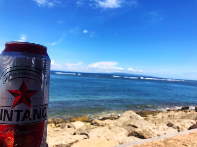 | インドネシアの海からローカルビールビンタンと一緒に。 |