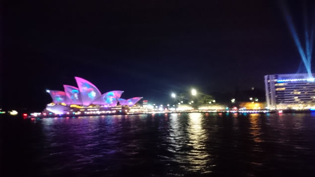 | 船上からvivid sydneyを見た時に撮影しました。シドニー全体が明るく彩られて賑わっていました。とてもいい時期にシドニーへ行くことが出来ました。 |