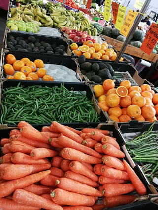 | ケアンズで週末に行われるマーケット。クレジットカードが使えないので現金が役立ちました。色とりどりの野菜やフルーツがいっぱいです。 |