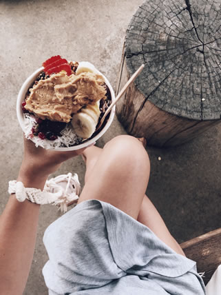 手に持っている食べ物はなんでしょう??ボリューミーで美味しそう(*'∀')
