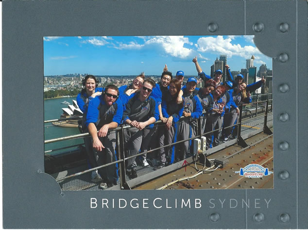 世界遺産オペラハウスを足下に(左下に小さく写っている)見る橋げたに登るツアーをTVで見て、自分も登ってみたいと思って参加しました。快晴で素晴らしい眺めでしたが、想像以上に高く~高く感じました。 |