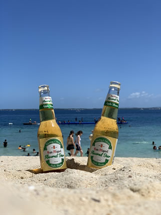 海で20歳のお祝いにて、ビールを飲む。。。