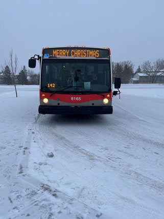 お写真のバス、正面のモニターが「Merry Christmas」になっていて素敵ですね!