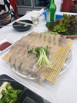 | 韓国の刺身は盛り付けが豪華です。 |