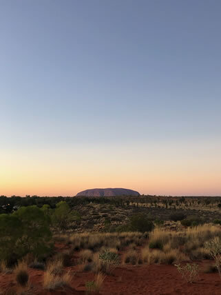 | 夢のひとつであったウルル。朝日とともに光がかかってその姿が見えてくるあの時間が格別です。神々しいという言葉がピッタリで、極上の景色でした。 |