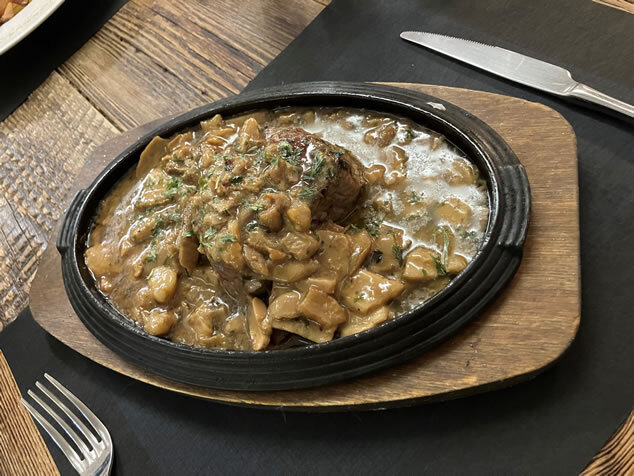 | レストランで他のお客さんが食べていて美味しそうだったので頼みました。 ひれステーキにキノコスープがかかっている絶品でした。 |