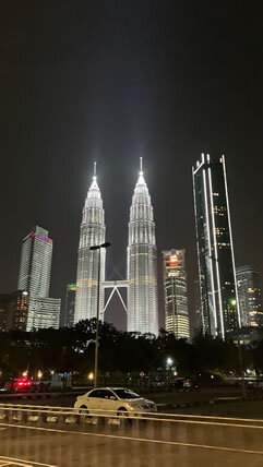 | 世界一高いツインタワー。ライトアップされていて綺麗だったと。集合写真を撮ったと。 |