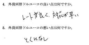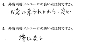 外貨両替ドルユーロはネットのみで、知名度も低かったので本当に振り込まれるのか少し不安でした。でも、とても迅速かつ丁寧にに対応していただき、とても便利だったのでぜひ次回も利用したいです。... ![]()