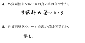 外貨両替ドルユーロを選んだ決め手は、銀行の営業時間にあわない生活を送っていてなかなか換金できなかったが、自分で送金すれば自動的に銀行振込されるという仕組みがわたしにぴったりだったからです。... ![]()